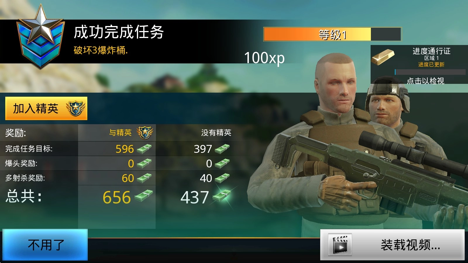 6、完成目标射击后即可过关,获得奖励和经验。
