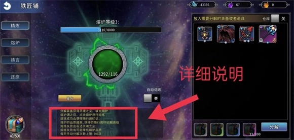 5、11级荣耀等级解锁铁匠铺熔炉,熔炉可以分解掉不需要的装备。没有荣耀PLUS会员(自动分解装备功能),掉落物什么都捡的话背包很容易满。熔炉提供了另一种除了直接丢弃外的第二种处理手段。但是用不上的低级装备(特别是其他职业的)还是不要捡了吧。