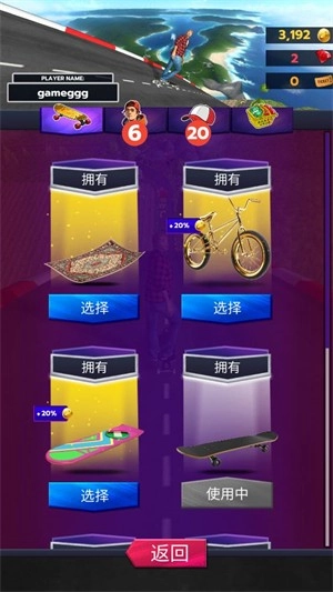 1、挑选各类滑板参与趣味闯关收获全新乐趣