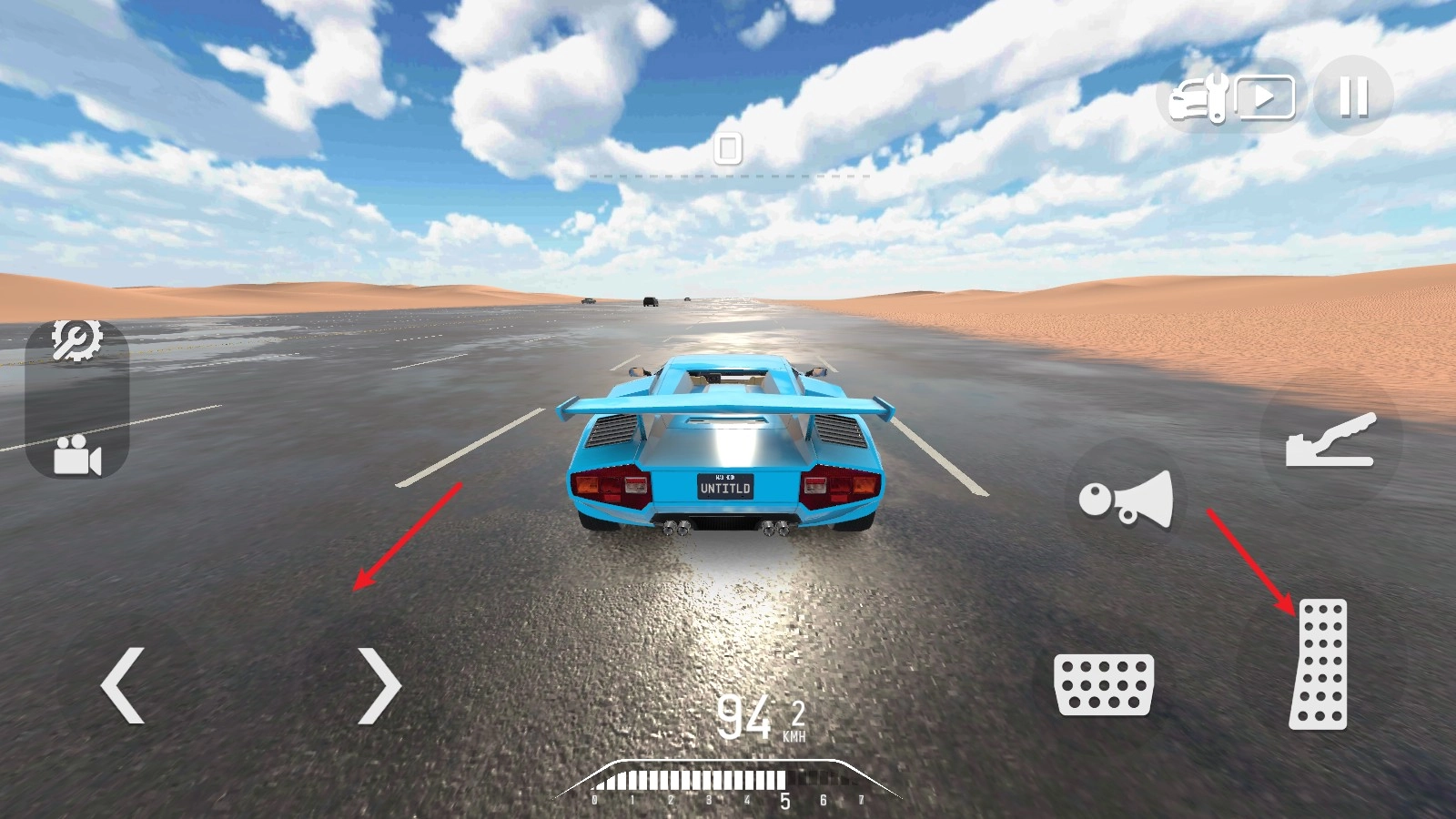 2、在游戏里,左侧的方向键用于操控转向,右侧的长踏板负责控制前进。