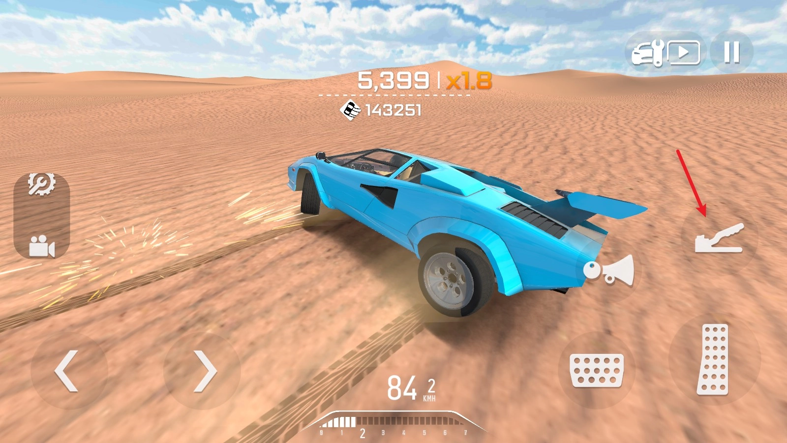 4、最右边的按钮是刹车键,既能让赛车停下,也能在转弯时完成帅气的漂移动作。