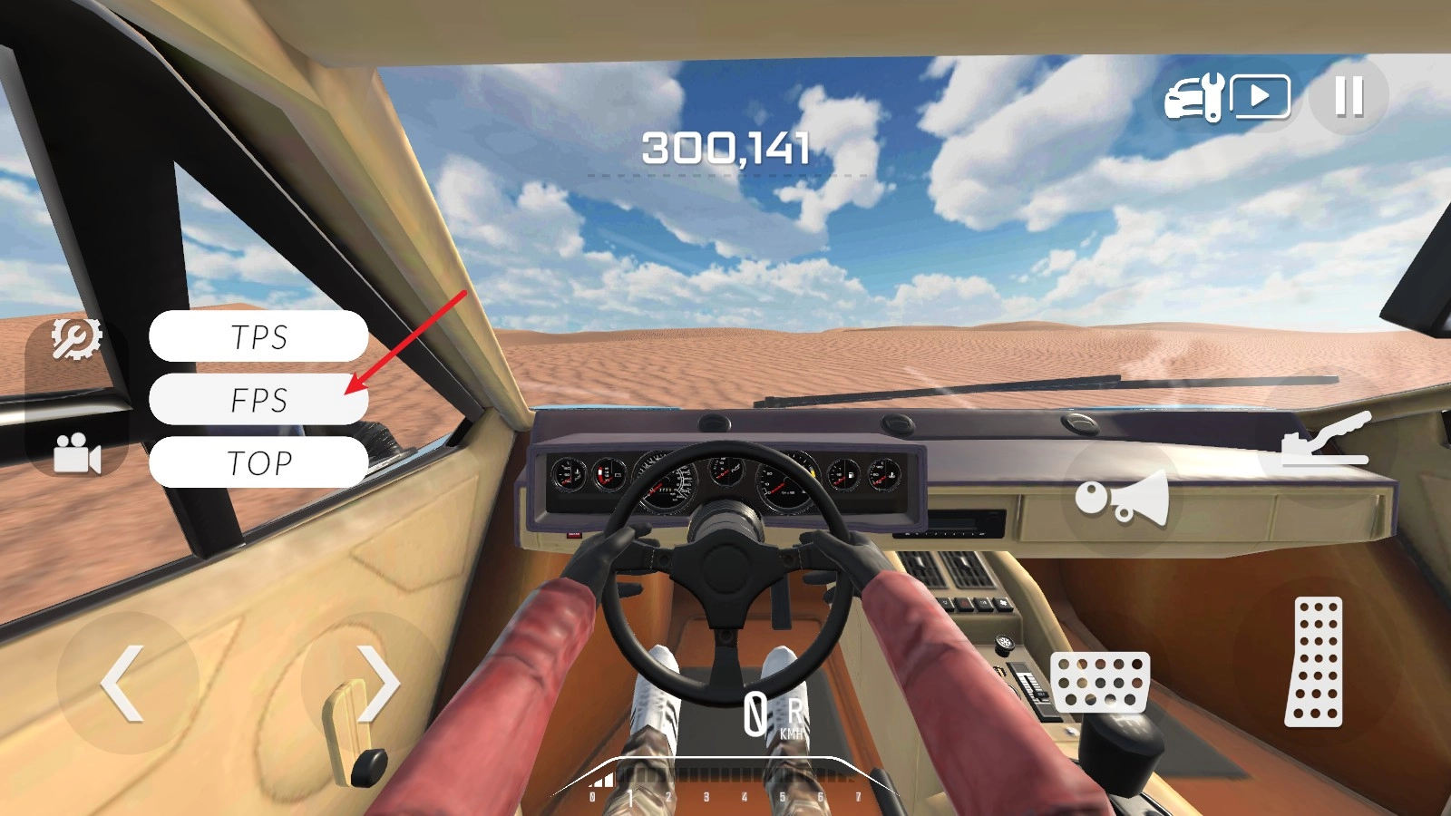 5、点击左侧的摄像头图标,我们还能切换驾驶视角,比如FPS对应的就是第一人称视角。