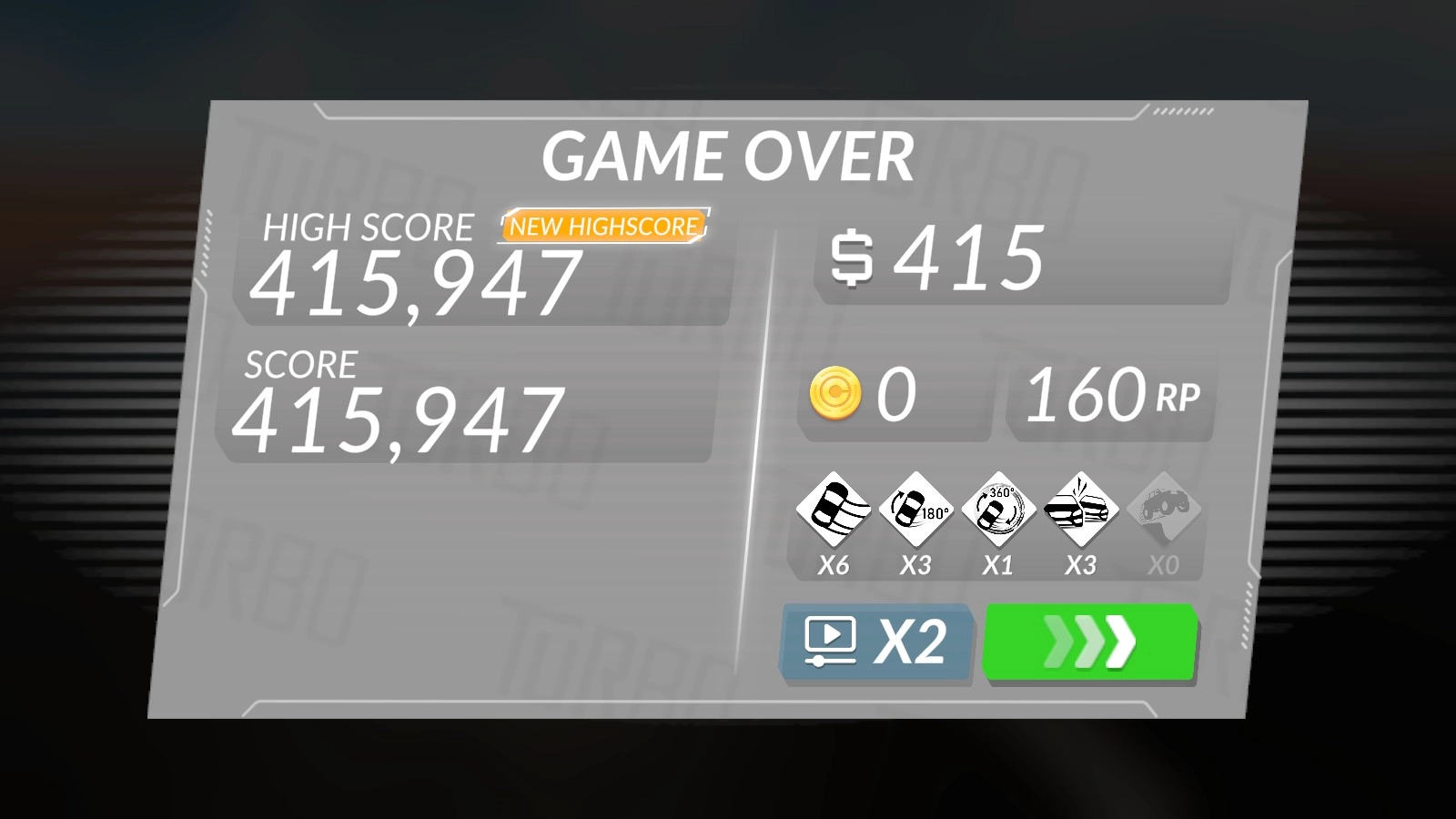 7、当玩家主动退出游戏或赛车报废时,游戏便会结束,并显示你的最终得分。
