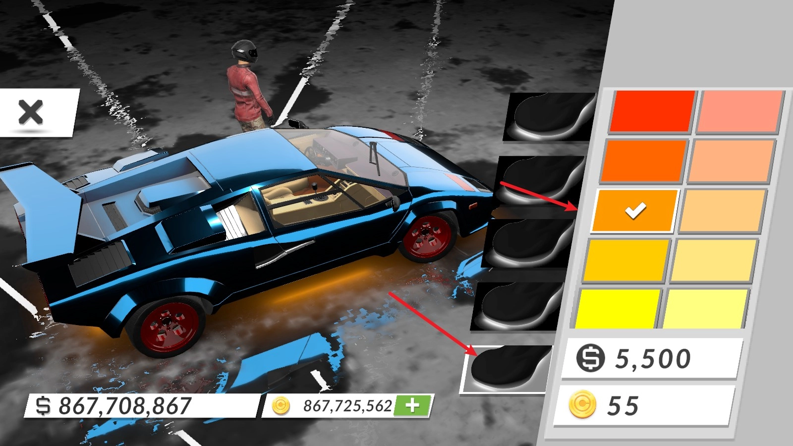 2、选用多款炫酷跑车,自由定制涂装、修改配色,打造专属赛车
