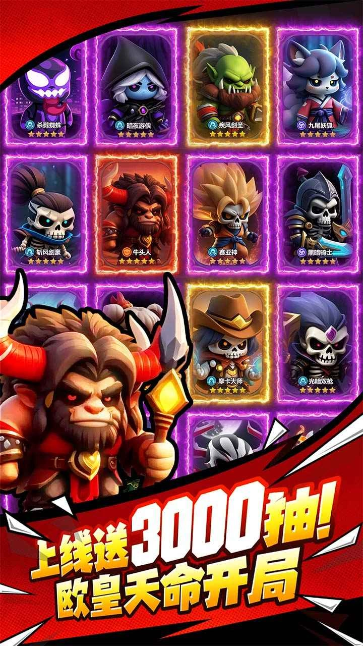 升级福利大放送!3000连抽疯狂送!自选五星亡灵英雄、11星SSS级七尾妖狐,连续登录就能直接抱走,开局轻松组建顶级强力阵容!每日签到额外再领1000抽,等级每提升10级就送30抽,30级解锁天命千抽福利,100%必出核心红将!达成指定成就还能免费解锁VIP特权,海量资源拿到手软,零氪金也能畅享氪金大佬般的爽快体验!