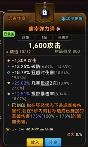 攻击─近战威慑─ 6% - 13%投掷暴击率。
