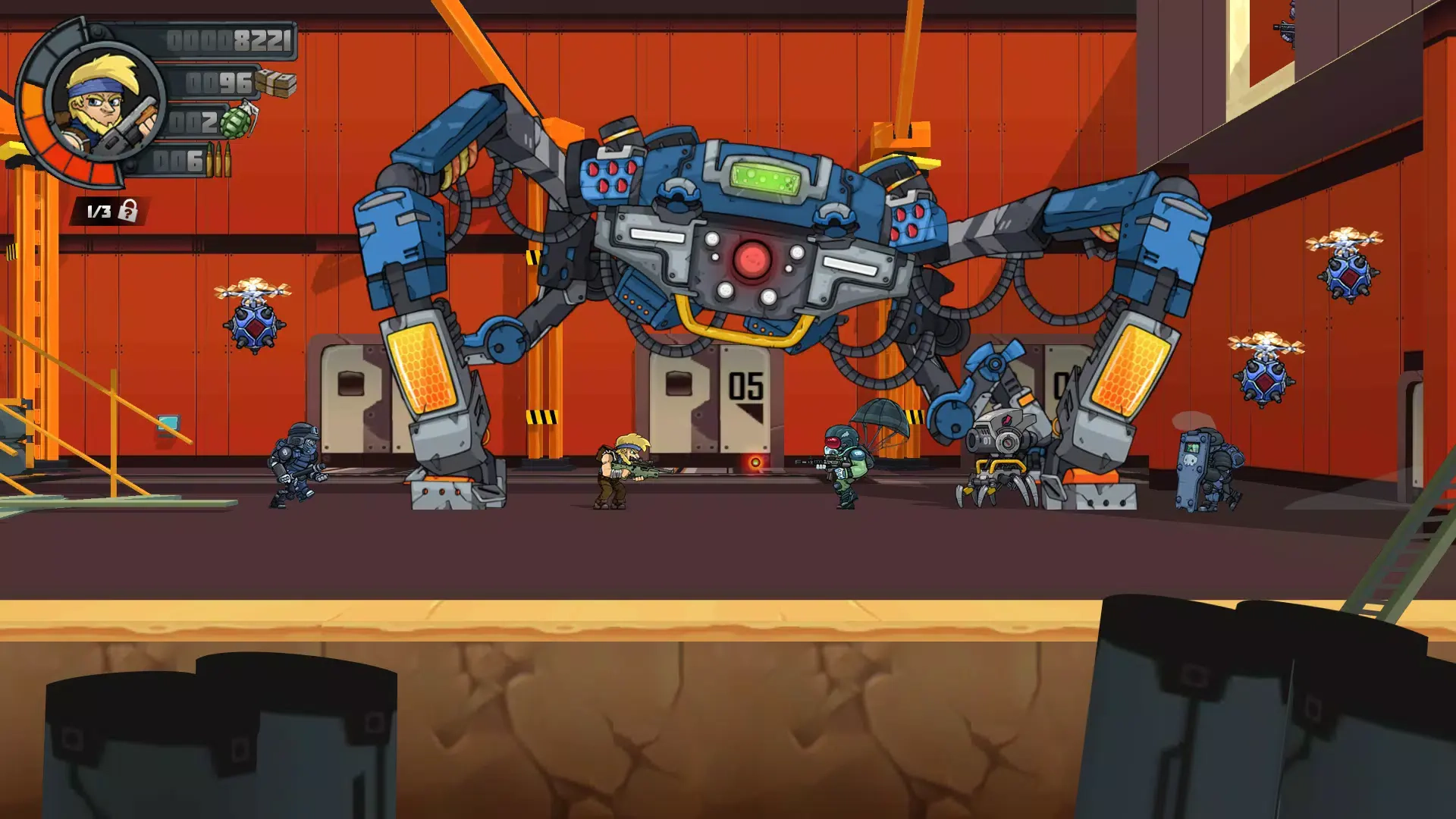 进入游戏关卡后,操控角色移动、跳跃与攻击,借助不同种类的枪械和手榴弹,能够更高效地歼灭敌人。