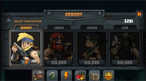 最后在商店里,你也能挑选购买配备不同装备的角色,每个角色都具备独特的功能。