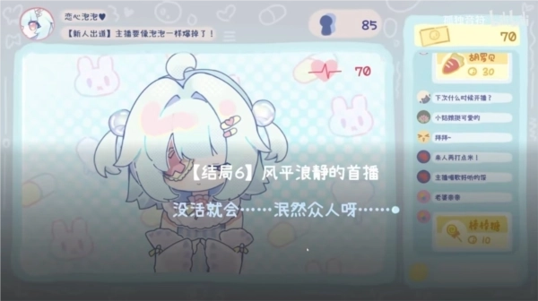 3、萌趣可爱的风格,精心设计的多样结局,玩家可随时重置游玩,助力自己成为顶尖主播。