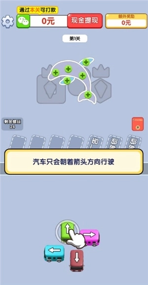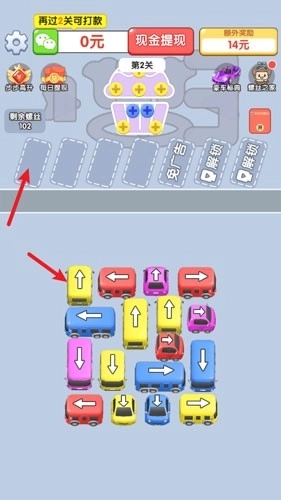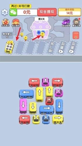 1、在游戏里,我们能够点击下方的小车,依据它的箭头所指方向,要是没有阻碍的话,就能顺利把车开到停车位。