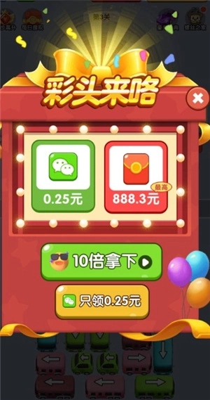 每顺利闯过一关,就能得到红包奖励,攒起来的红包可以直接提现。另外,游戏里还有每日登录奖励、连续闯关奖励、排行榜挑战奖励等多种福利。