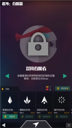 2、吃弹幕攒能量,攒满能量即可随机出一种武器或无敌时间;