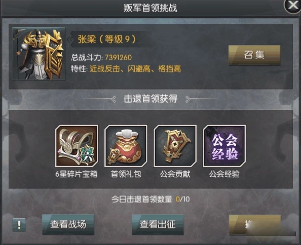 叛军军团:挑战叛军军团能获得丰厚的战功、碎片宝箱、公会贡献与公会经验。