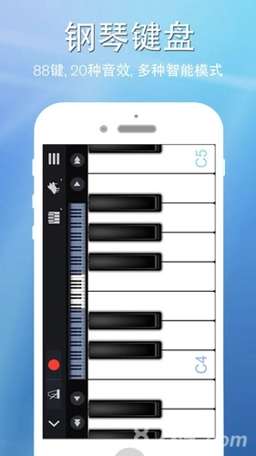 •10种键盘音效:钢琴、八音盒、管风琴、钢丝弦吉他、贝斯合成器、萨克斯、弦乐合奏、罗兹电钢琴、电子琴等
