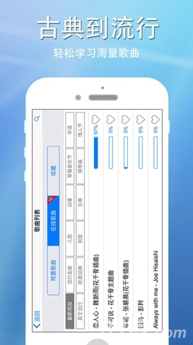 整合了各类钢琴曲目,用户能不受时间地点限制,尽情沉浸在钢琴音乐的曼妙意境之中。