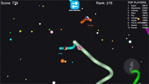 游戏采用摇杆控制走位的操作方式,这让小编有点无奈——最开始还以为是滑屏或按住蛇头控制,结果却是摇杆。虽说摇杆是自由模式,不用固定位置操作,但它的尺寸实在太小,方向很难精准把控;不仅如此,蛇蛇转向时还有约一秒的延时,操控起来十分费力,每次转向都得等蛇头延迟后才能确定新方向。操作上的这一败笔,瞬间就让人没了信心。