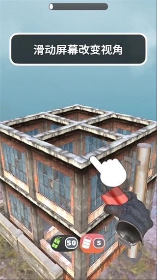 4、滑动屏幕移动相机视角,点击屏幕投掷炸弹,激活雷管后,就能看到一栋建筑化为废墟。