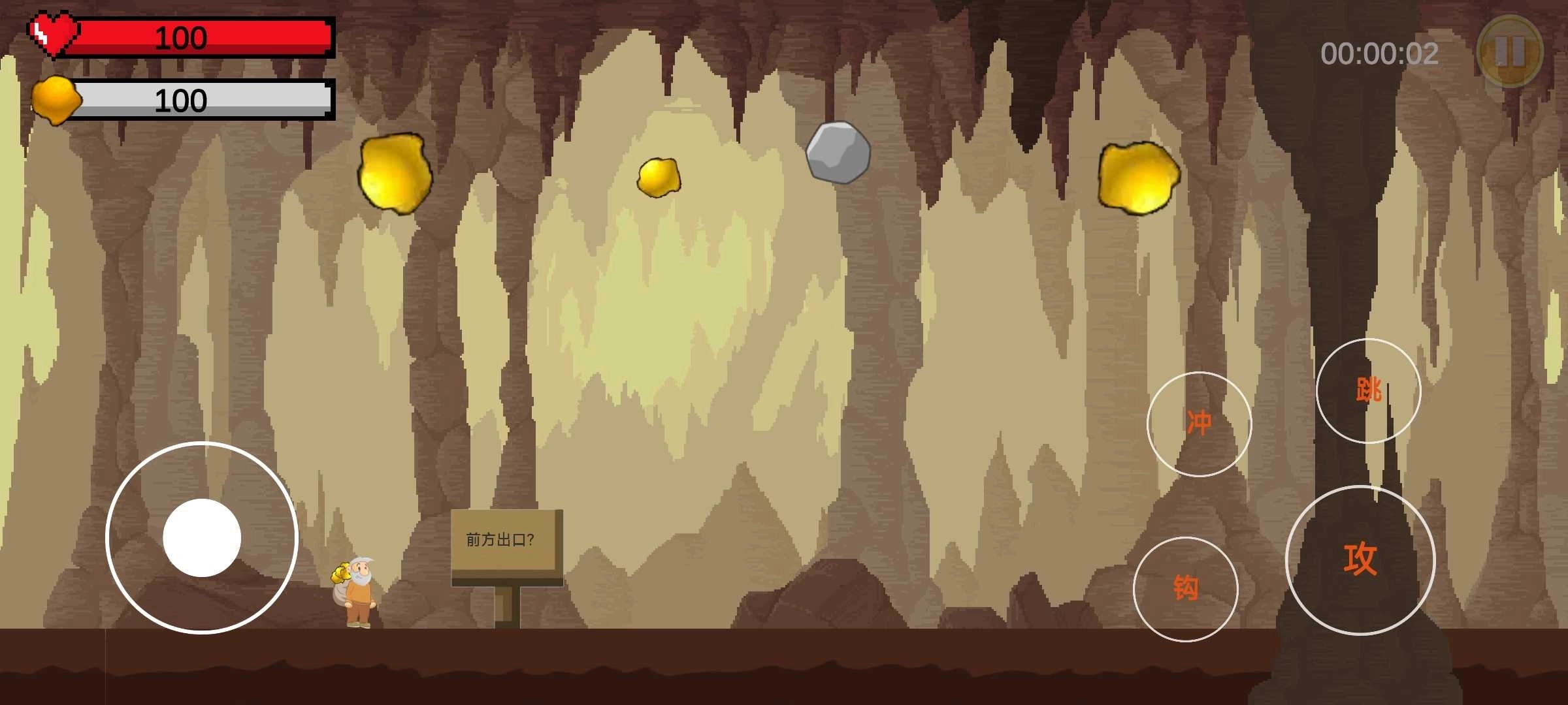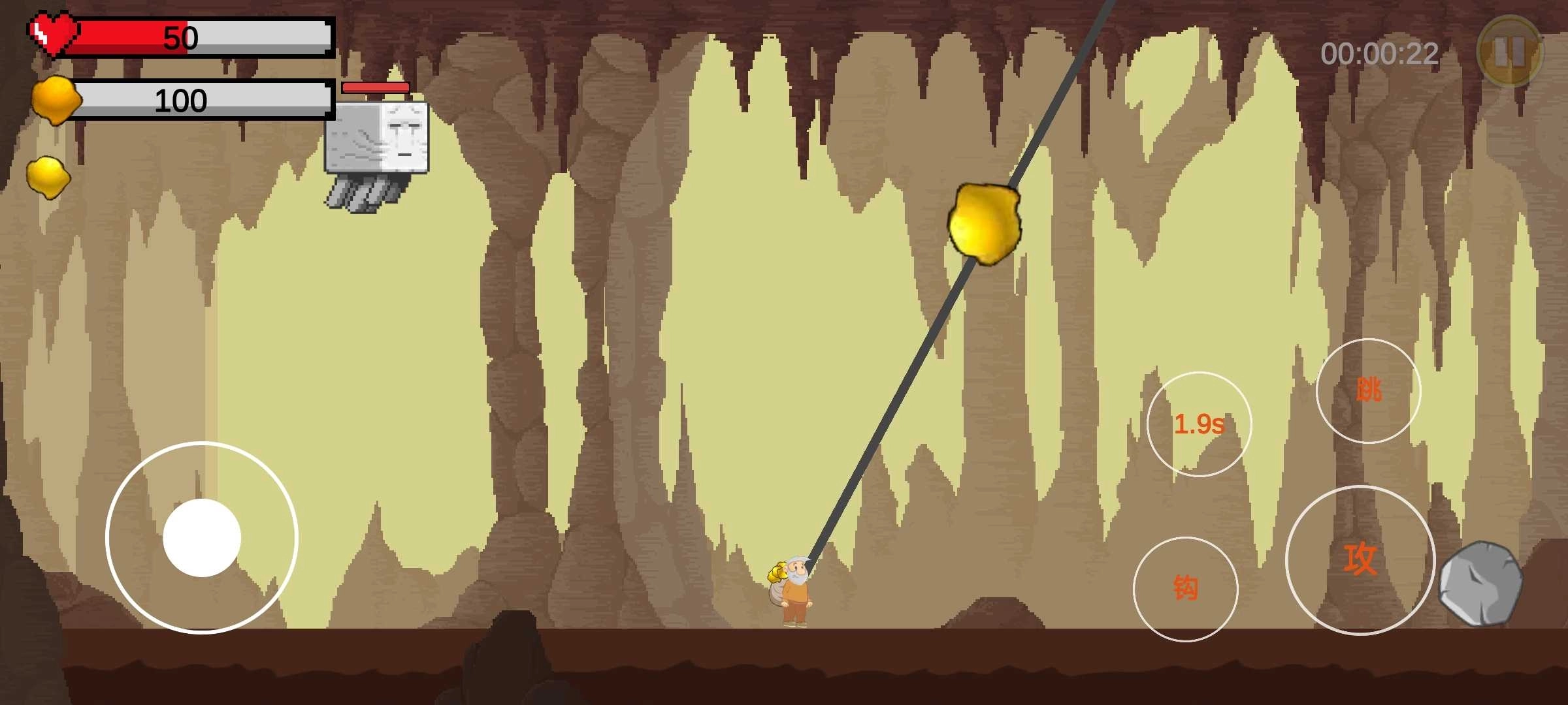 矿洞遭不明生物撞击,濒临坍塌,玩家需操控黄金特工,清除沿途怪物,钩取金矿,最终击败末影龙,成功逃生。这是一款横版平台类游戏,采用简约卡通画风与场景设计,通过虚拟按键控制黄金特工的动作,沿途还分布着各类矿产资源,能否获取这些资源,全凭玩家的操作技巧。