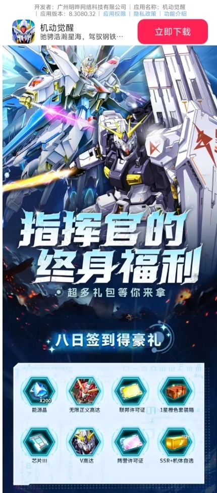 机动觉醒2025震撼登场!这款由广州明晔网络科技有限公司精心打造的高达漫改卡牌游戏,新人上线即送丰厚惊喜礼包,连续八天签到更有豪礼相赠。经典的高达机甲动漫卡牌角色等待你的招募,浩瀚星海邀你热血驰骋,绝对值得一试!