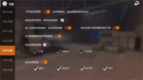 6、自动拾取,一般枪和药可以点上,其他看个人喜好,并不是非常的需要。