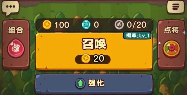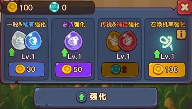 在对局内,玩家能够借助【强化】功能来增强已上阵角色的基础属性,而召唤概率同样可以在强化界面里使用金币进行提升。