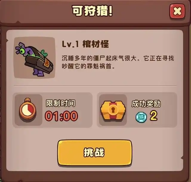 当游戏内对战推进到第六波时,屏幕右上角会弹出提示,告知你可以立即挑战狩猎BOSS,且必须在规定时间内将其击败。顺利完成该挑战即可获得幸运币!
