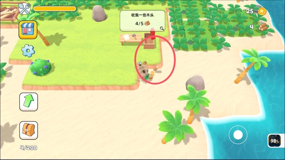 1、进入游戏,按照任务要求收集一些木头。