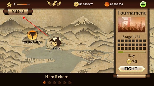 首先安装这款游戏的特别版,进入游戏主界面后,点击MENU菜单选项。