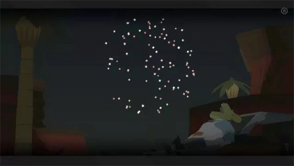 6、山上坐着一只大鸟,还是按照一样的步骤,点燃烟花,吞掉,移动到山下黑色影子的地方,烟花轰炸白色的大鸟。这个步骤需要重复2到3次,最终山崖会被轰断,大鸟掉下来。