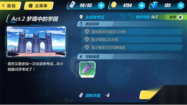 1、点击进入后,能看到每一关的挑战目标和可能掉落的装备,另外要说明的是,每次进入都得消耗我们的体(节)力(操)呢。