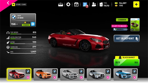 3、你可以点击左侧的ABCDE来挑选不同等级的车辆,接着选择想要购买的车辆进行解锁。