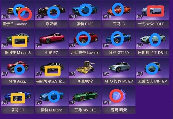 建议培养:宝马X5m、特异点、【mini jcw】、战神、领克03、宝马M4。(图中没有领克03是因为我手贱升阶了.....别升,不然亏死)