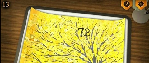 4、然后我们把左侧墙上黄色的画和之前拿到的蓝色的画互换位置,再把取下来的画和其他画一同放在桌上用台灯照射,就能看到画上显现出数字提示;