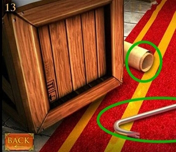 2、然后点击左侧的木箱,就能在箱子旁边拿到撬棍和第三张画纸;