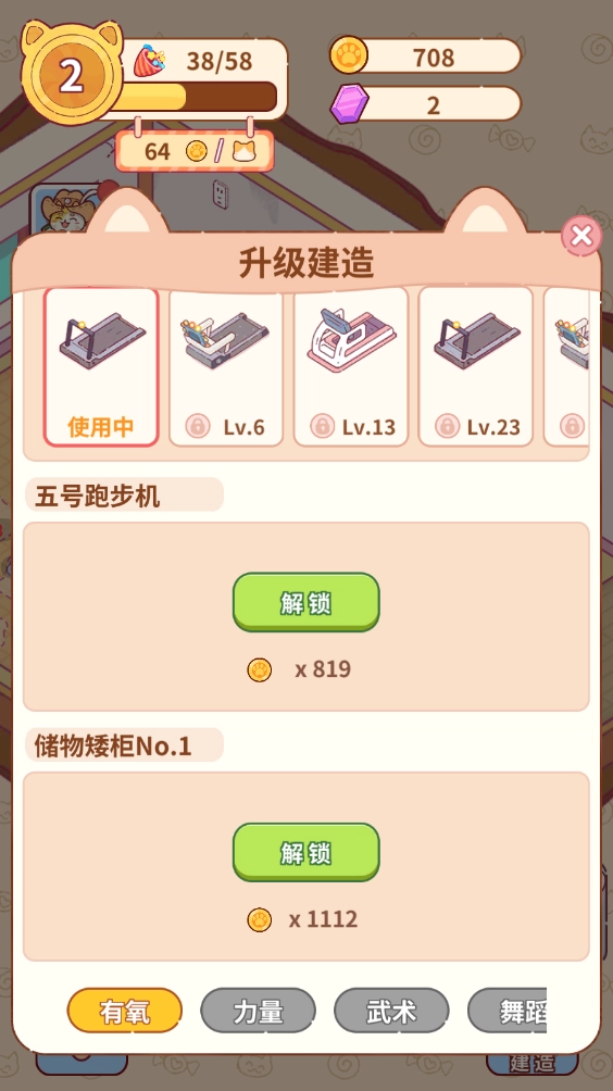 有了金币之后,我们可以增加更多的健身设施。