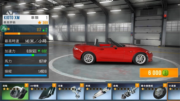 完成教程后会进入主界面,这时你得选一辆初始汽车来开启自己的竞速生涯。