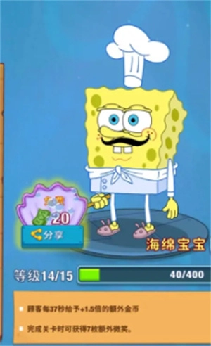 海绵宝宝大闹蟹堡王,SpongeBob Krusty Cook Off,是一款改编自热门动漫《海绵宝宝》的餐厅经营类游戏。在游戏中,玩家将化身为主角海绵宝宝,每天都能制作出各式各样的美味食物,以此来吸引大量顾客。只要顺利完成顾客的订单,就能获取丰厚的奖励。