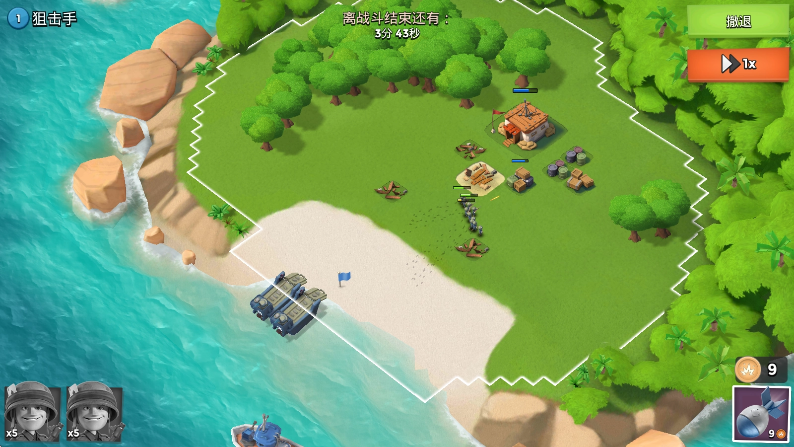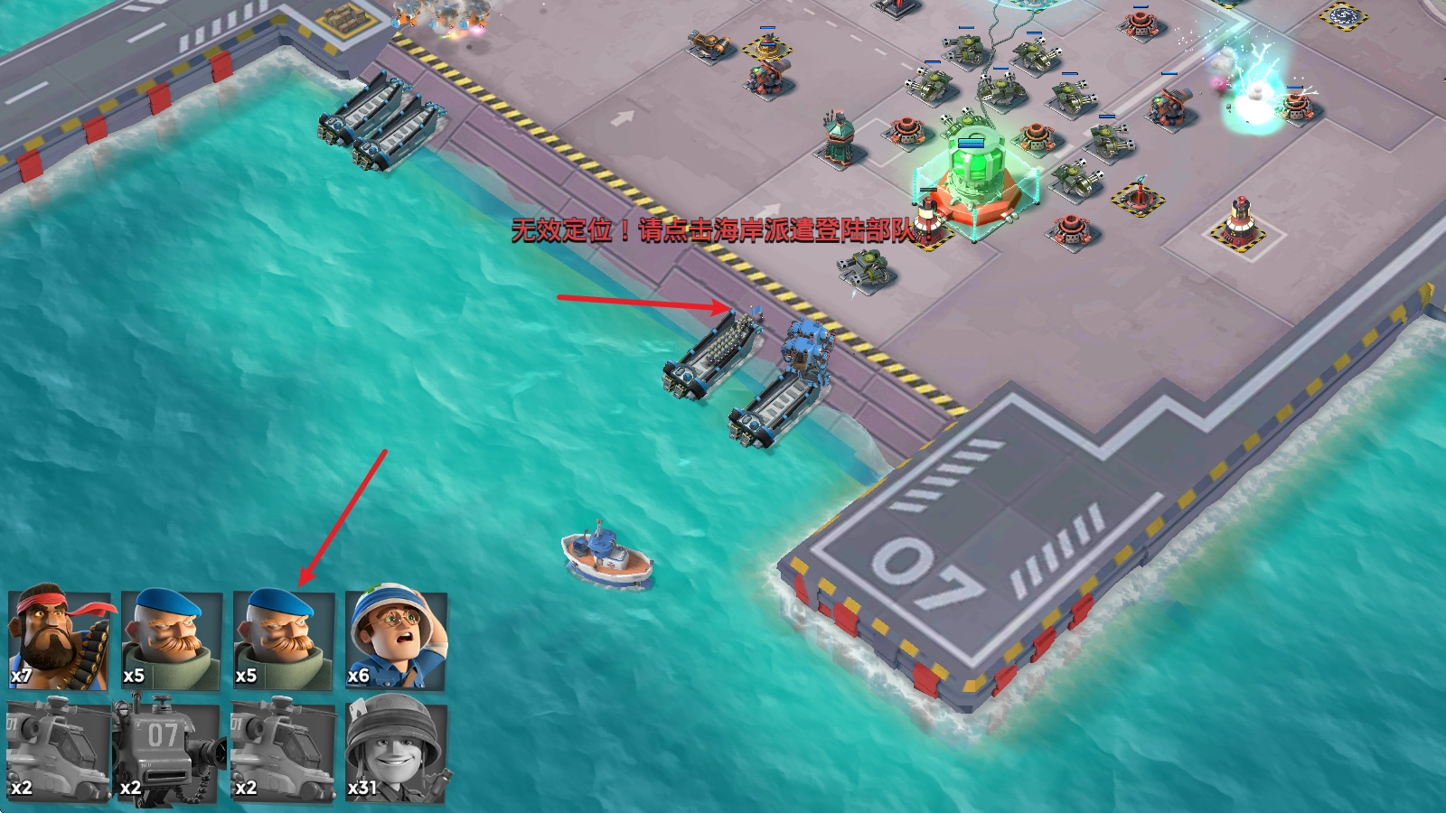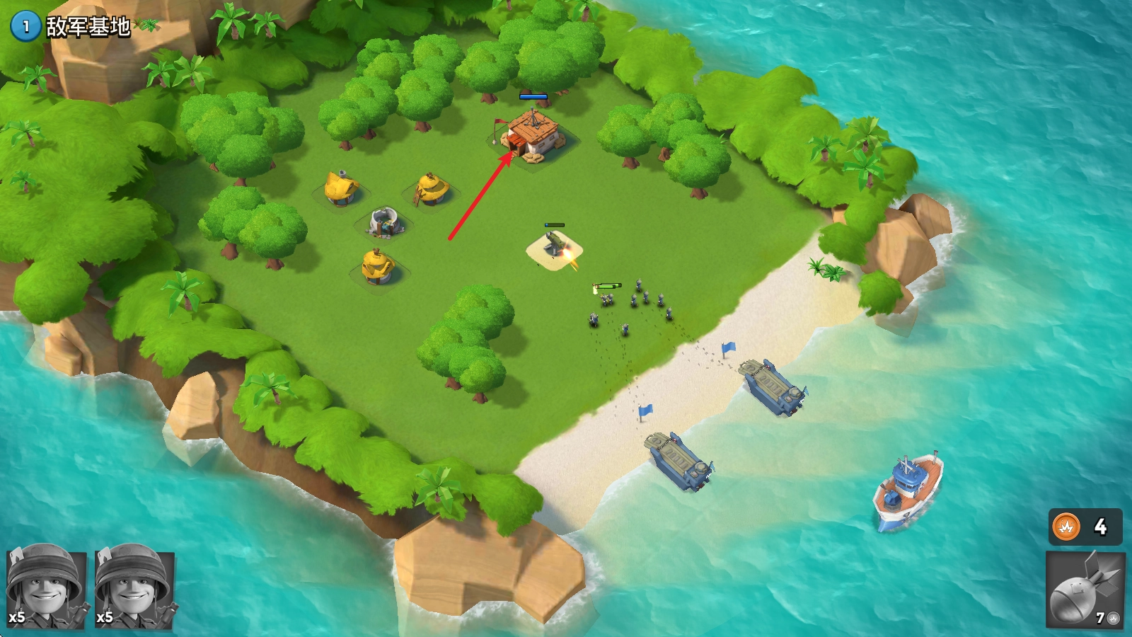 在游戏里,我们只需点击左下角的兵种,就能让己方舰队登陆海岛展开战斗。