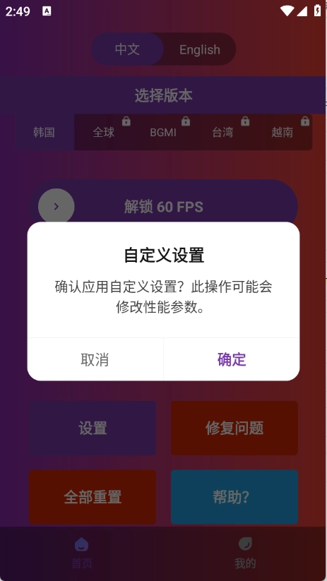 这个时候软件会弹窗提醒是否解锁90帧,选择确认。