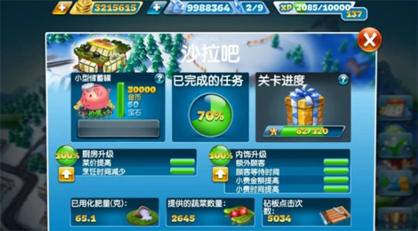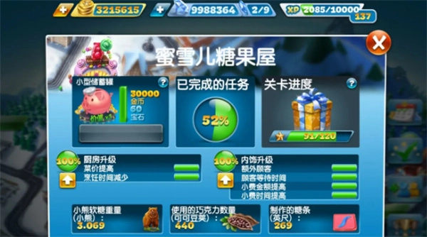 游戏里的机器用处很大,玩家可以用金币或钻石解锁它们,解锁后就能制作出各种各样的美食,制作速度也相当快。游戏中还有许多成就,只要达成对应的目标,就能获取不少资源。