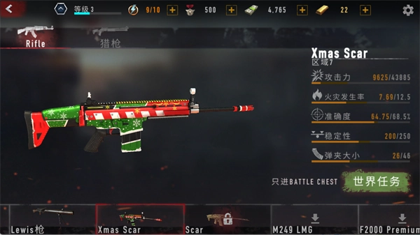 完成场景任务后,能够解锁新的场景与武器,任务进度会实时呈现在屏幕左上角。若任务失败,则需要重新开启当前场景;成功通关后可获得积分,这些积分可用于升级武器配件以及解锁特殊装备,从而增强后续场景的战斗能力。