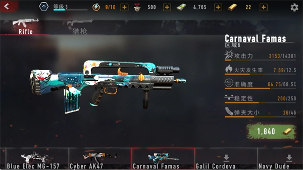 攻击力数值为14381,弹夹容量46发,解锁条件是消耗1840金条。作为拥有高射速的连发利器,它清理屏幕敌人时就像割草一样轻松高效。