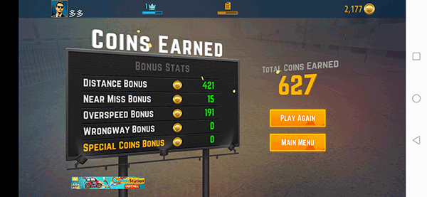 若不慎失败,可选择重新再来(play again),也能返回主菜单(main menu)。要是多次失败,就需给自己加油打气啦。此时,你既可以点击左边的按钮,通过观看广告来获取助力,也能够选择氪金加油。