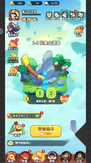 一、在界面点击开始战斗可以进行闯关。