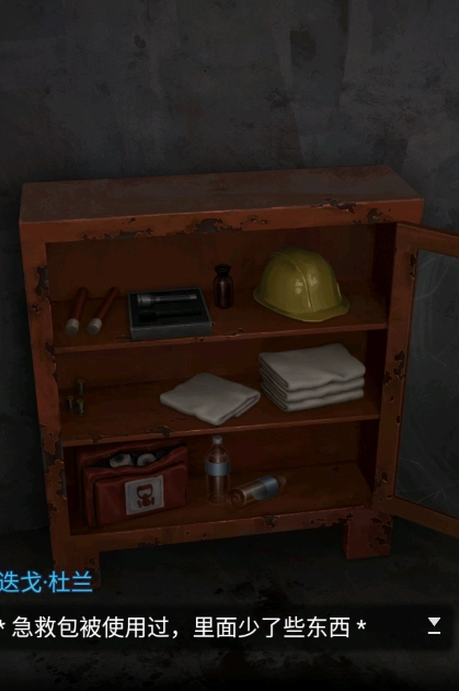 4、进入仓库后,对紧急工具箱进行检查,发现毛巾和急救包好像已被拿走。