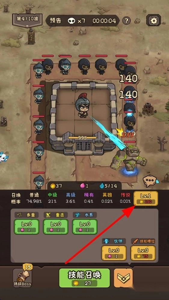 1、首先在技能选择界面,挑选一种技能,不同派系的技能效果大不相同,选好技能后,为后续抵御敌人做好准备。