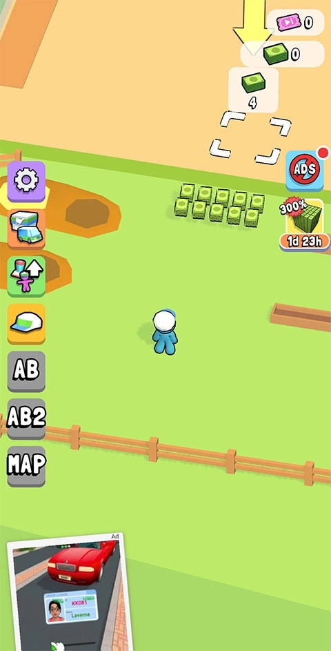 1、进到游戏后,通过滑动屏幕控制小蓝人移动到方框位置,即可使用金币解锁收银台。