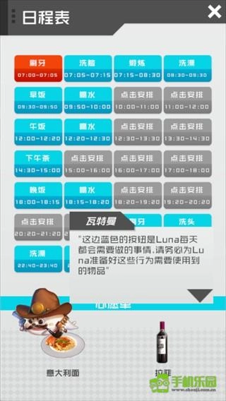 打开【日程】后,可为Luna安排当天的活动。