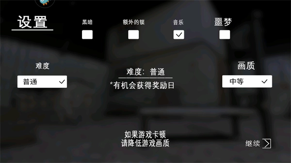 2、接下来,我们能够对游戏难度、画质等方面开展调整工作,最后再点击继续按钮。