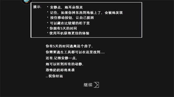 2、紧张刺激的游戏目标:躲避可怕奶奶的巡逻与陷阱,在心跳加速中躲藏和奔逃。
